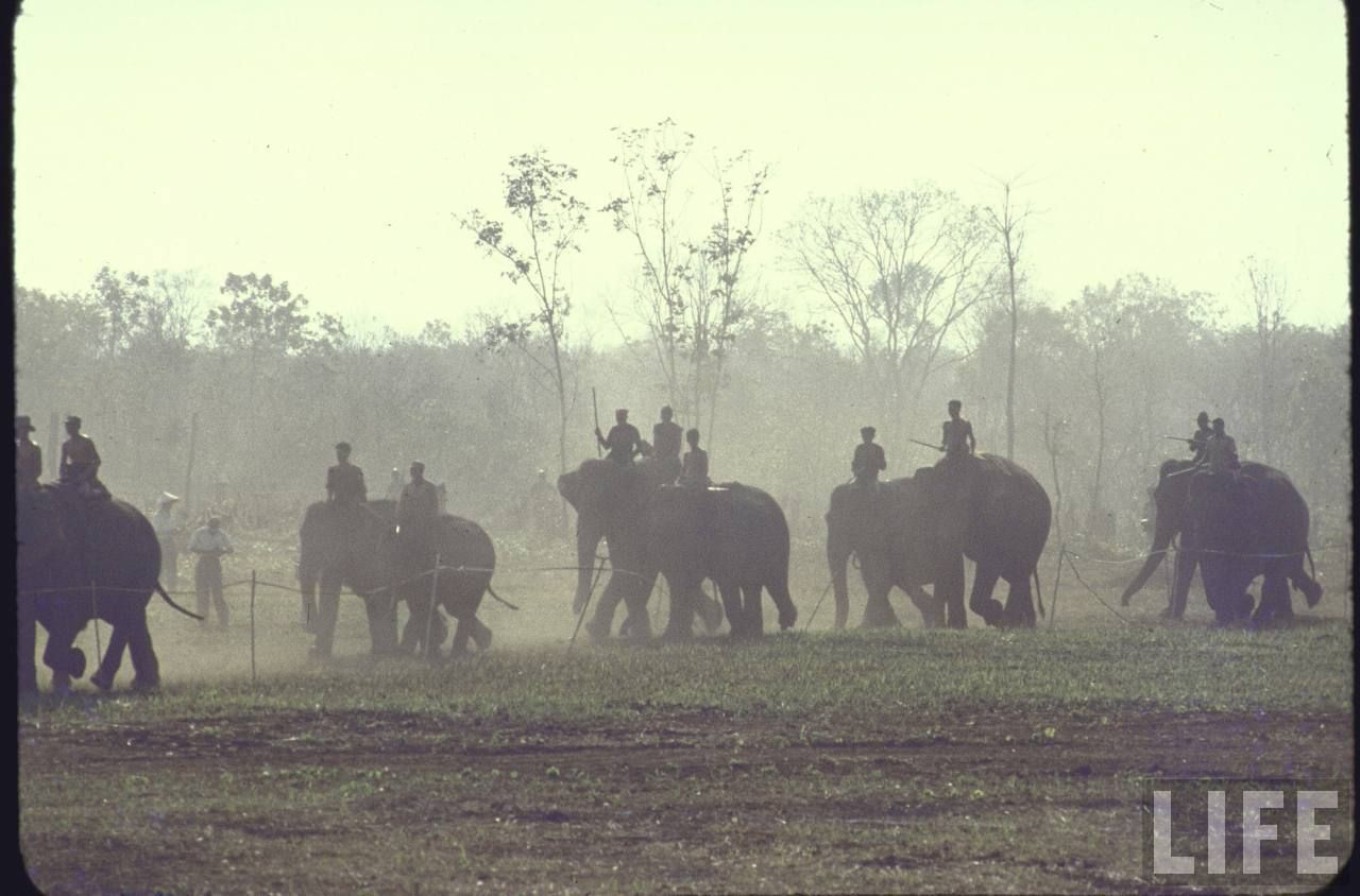 Những chú voi đua tập trung riêng một chỗ, chuẩn bị cho phần hào hứng nhất của lễ hội.